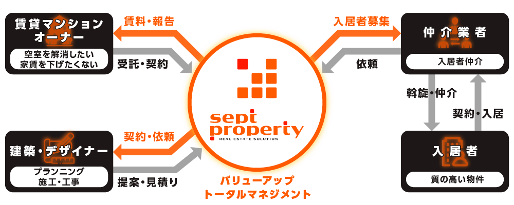 リノベーションの豊富な施工実績や、多彩なプランニングによる独自の企画力でオーナー様の収益最大化を図ります。